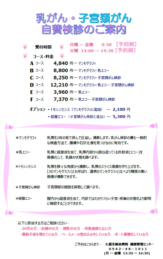 症状のない方で乳がん・子宮頸がん検診を希望される方