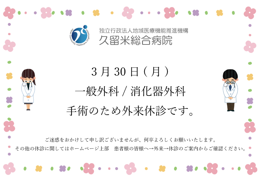3月30日(月)外科 休診のお知らせ